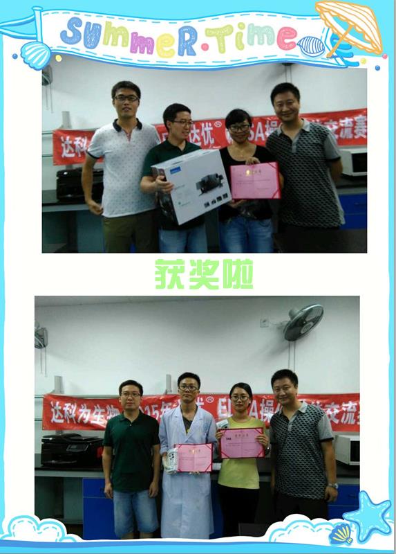 8月5日上午,由我公司主辦的‘百場’“2015達(dá)優(yōu)?ELISA操作技能交流賽”在廣州醫(yī)科大學(xué)免疫研究所第三場比賽成功舉辦。由于正處于學(xué)生暑假期間,雖然參賽人員只有9人,但還是擋不住大家學(xué)習(xí)交流的熱情,并且得到了同學(xué)們的支持和肯定。