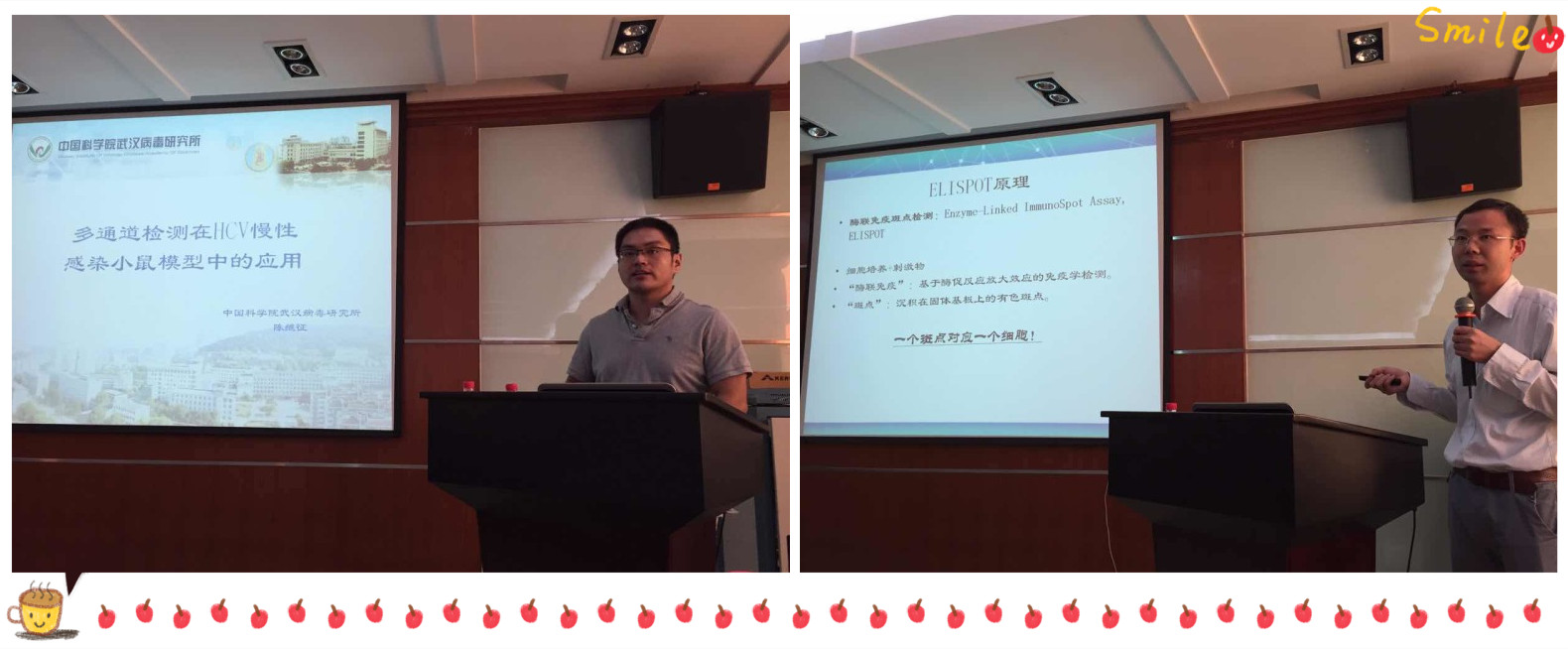 接下來是中國科學院武漢病毒研究所陳繼征副研究員作報告,陳老師首先給我們介紹流式的一些相關背景知識,如多色流式的原理及實驗操作中需要注意的要點,隨后又給我們講解多通道流式在HCV病毒研究中的應用,HCV感染的發(fā)生機制等研究成果。