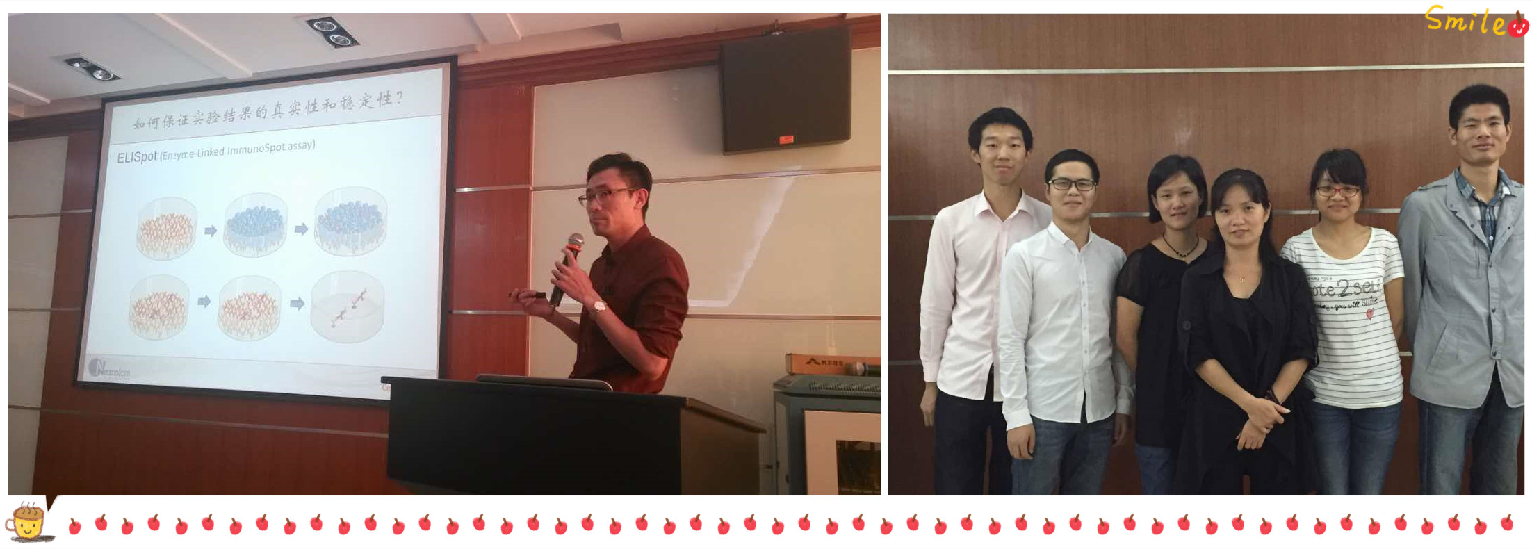 第三場報告由深圳達科為生物工程周翔經(jīng)理為我們介紹動態(tài)細胞因子檢測——ELISPOT技術。周經(jīng)理介首先紹了ELISPOT技術的基本原理,隨后講解了技術要點及應用,實驗過程中需要注意的事項等細節(jié)問題。