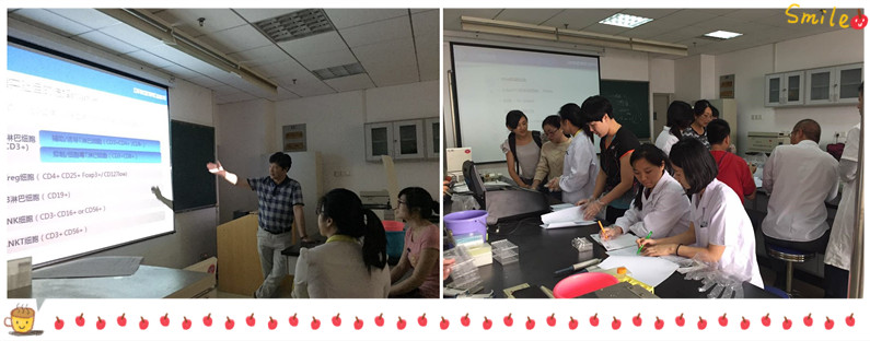 達科為生物第三屆流式培訓班——武漢分站實驗上機培訓于10月24-25日在華中科技大學同濟醫(yī)學院基礎2號樓9層進行。本次實驗內(nèi)容為人外周血的T/B/NK/NKT/Treg的流式檢測,流式細胞儀型號為BD LSRⅡ,為雙激光六色儀器,本次實驗panel共分成兩組,一組檢測T/B/NK/NKT,一組檢測Treg。實驗采取小組教學,上機學員共計60人。
