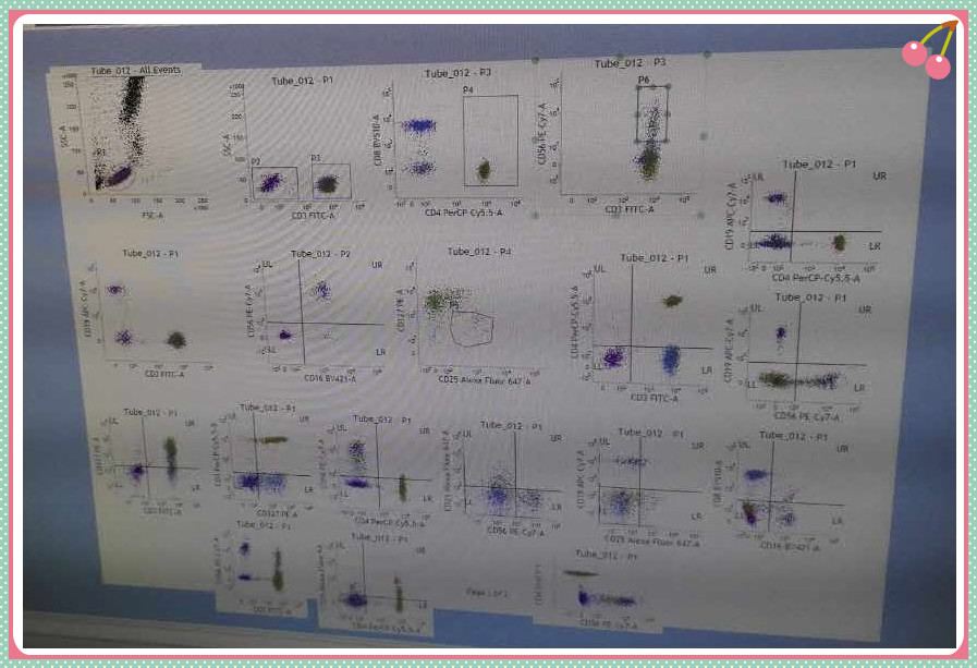 最后為流式儀器檢測,由流式儀器平臺陳老師為上機(jī)學(xué)員講解上機(jī)測試過程以及數(shù)據(jù)分析。陳老師耐心細(xì)致的講解,從儀器的初始設(shè)置到電壓補(bǔ)償?shù)恼{(diào)節(jié),從同型對照及陰性陽性界限的設(shè)置,FMO的劃門設(shè)置到最終的數(shù)據(jù)分析,深入淺出,循循善誘,學(xué)員們都紛紛表示收獲頗豐。