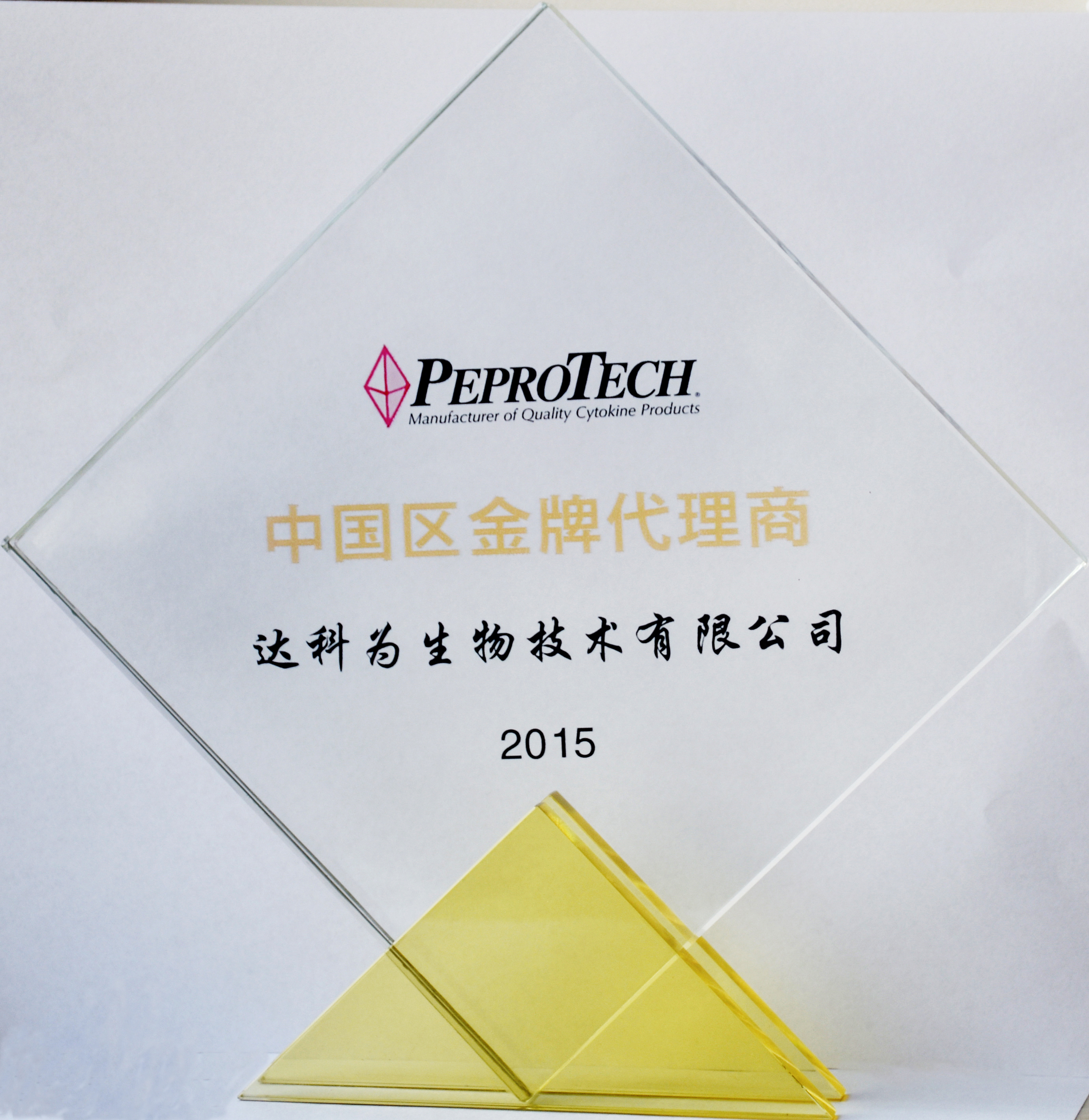 達(dá)科為生物榮獲 PeproTech 2015年度“中國(guó)區(qū)金牌代理商”