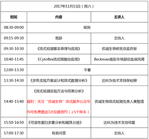 抓住秋天的尾巴,流式培訓(xùn)班要來(lái)長(zhǎng)沙啦。本次達(dá)科為生物攜手優(yōu)誠(chéng)生物,為熱愛(ài)流式學(xué)習(xí)的您準(zhǔn)備了內(nèi)容豐富的流式相關(guān)理論課程及實(shí)驗(yàn)課程。達(dá)科為生物作為國(guó)內(nèi)一流的生物試劑供應(yīng)商,2017年在南京、杭州、武漢、北京、蘇州、溫州、鄭州等地舉辦了二十余場(chǎng)免費(fèi)流式培訓(xùn)班,參加培訓(xùn)人員達(dá)到3000人,取得了熱烈的反響和良好的反饋。優(yōu)誠(chéng)生物是湖南省乃至全國(guó)內(nèi)的優(yōu)秀的科研服務(wù)商,提供從課題設(shè)計(jì)、實(shí)驗(yàn)實(shí)施到成果發(fā)表與轉(zhuǎn)化的全方位一站式服務(wù)。本次雙方合作,共同為您獻(xiàn)上一場(chǎng)流式盛宴。