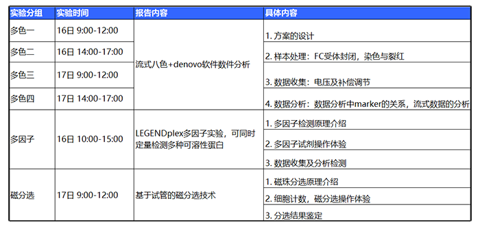 *注:請注意多色一、二、三、四為同一實驗,請根據(jù)自己的時間報名,請勿重復(fù)報名。上機實訓(xùn)多色實驗擬招40人,多因子實驗與磁分選實驗分別擬招10人。