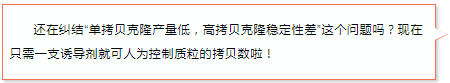 首先安利一下Epicentre的專利技術——CopyControl?克隆系統(tǒng),能夠讓您共享單拷貝和高拷貝的優(yōu)點。CopyControl?克隆:首先以單拷貝形式生長,單拷貝可以確保插入穩(wěn)定及成功克隆編碼基因序列;在需要的時候,通過誘導液誘導成高拷貝克隆,以便下游應用所需。這一系統(tǒng)可以用來構(gòu)建PCR克隆,對于BAC,F(xiàn)osmid文庫等大型質(zhì)粒格外有用。