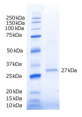 STING通過胞漿區(qū)域與CDNs結(jié)合。InvivoGen提供的重組STING蛋白對應(yīng)可溶性的胞漿結(jié)構(gòu)域(aa 137-379)R232突變型,是普遍的人源STING蛋白的同型。這個27kDa的重組蛋白產(chǎn)生自哺乳動物中國倉鼠卵巢細(xì)胞系(CHO),通過親和層析純化,不帶標(biāo)簽,能夠被市面上的商品化人源STING抗體所識別。