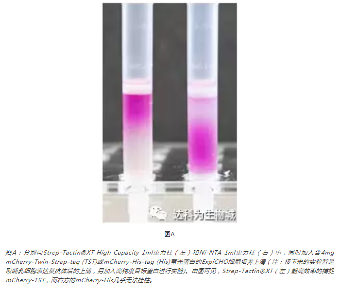 圖A比較了His-tag與Strep-tag?直接加入哺乳細胞培養(yǎng)上清純化目標蛋白的表現(xiàn)。
