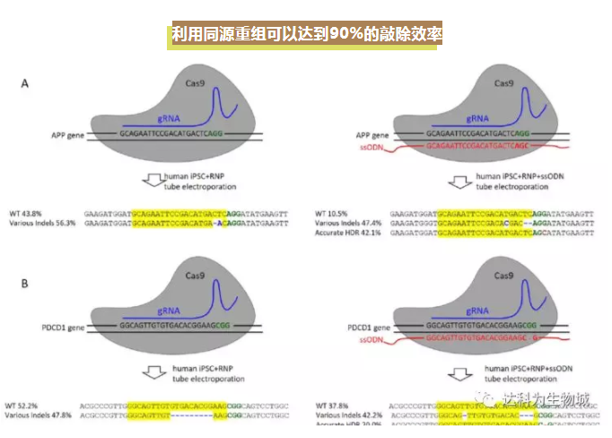 徐、夏兩個實驗室主要從事干細胞和轉基因動物模型研究,因此對于基因編輯主要著眼在方法學上,力爭使基因編輯高效并且簡單,可以普遍性地應用于各種細胞上。相比于Marson組的文章,徐、夏這篇文章還報道了在除了T細胞之外的多種細胞包括iPSC干細胞,MSC間充質干細胞,以及一些細胞系上取得的良好效果。