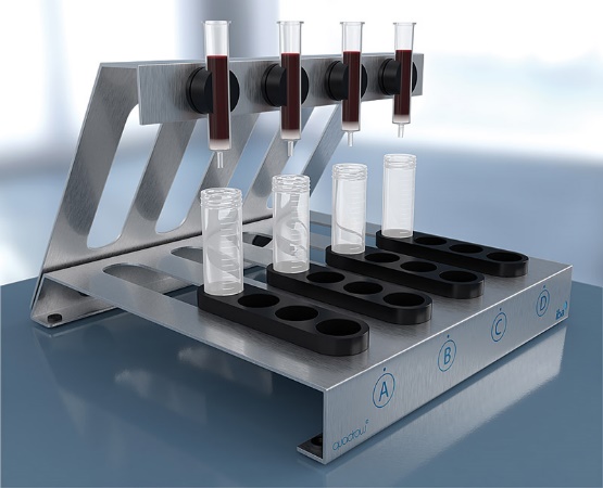 Adapter是Fab-TACS系列最先出來的產(chǎn)品,它是單根柱子分離。在我們血量較大的時(shí)候,我們想同時(shí)分選,Adapter的分選試劑盒操作起來就比較麻煩了,條件也很難保持一致性。因此,IBA廠家推出了Quadrow的分選試劑盒,它可實(shí)現(xiàn)4根柱子同時(shí)分選。