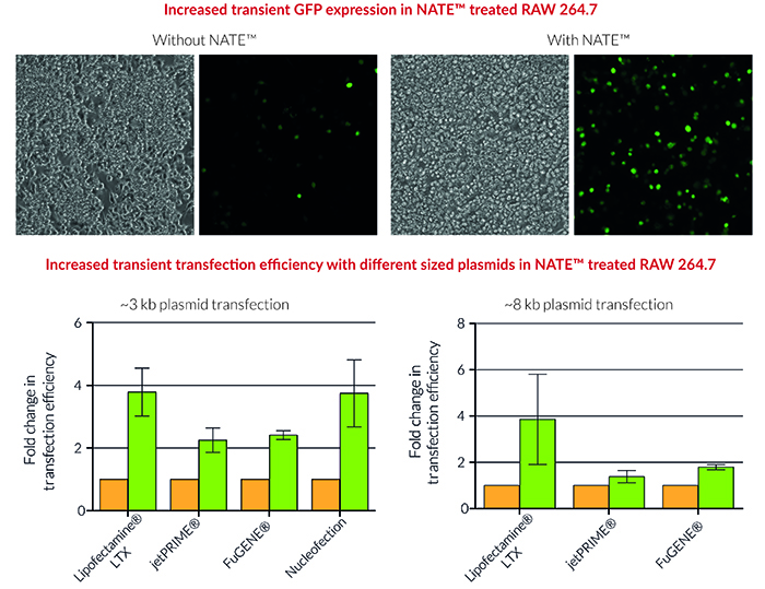 與常用的轉(zhuǎn)染試劑(如GeneXPlus,Lipofectamine?LTX和jetPRIME?),物理方法(電轉(zhuǎn))以及慢病毒轉(zhuǎn)染等兼容;