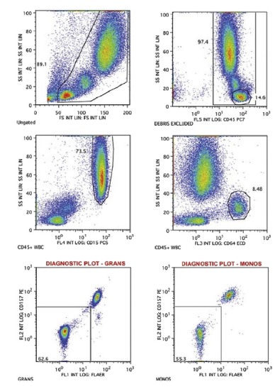 Sutherland DR, Kuek N, Azcona-Olivera J,etc. Use of a FLAER-based WBC assay in the primary screening of PNH clones. Am J Clin Pathol. 2009 Oct;132(4):564-72.