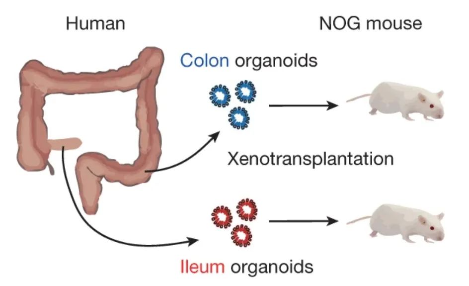 將人類回腸或結(jié)腸類器官移植到免疫缺陷(NOG)小鼠結(jié)腸