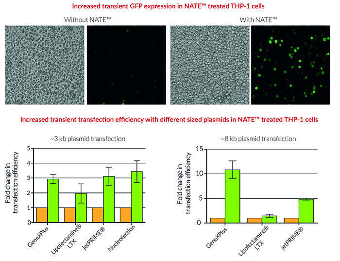 與常用的轉(zhuǎn)染試劑(如GeneXPlus,Lipofectamine?LTX和jetPRIME?),物理方法(電轉(zhuǎn))以及慢病毒轉(zhuǎn)染等兼容;
