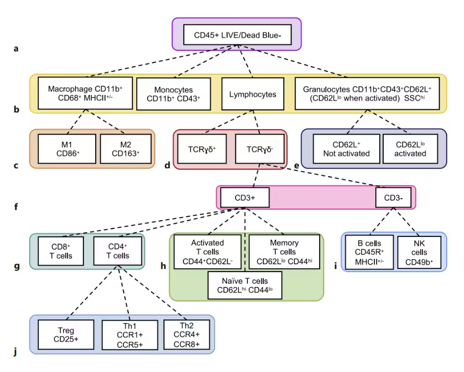 大鼠模型是生物醫(yī)學(xué)研究中重要的資源,因與人類免疫系統(tǒng)相似,而常被用于免疫相關(guān)的功能研究。然而目前小鼠模型在基礎(chǔ)和機(jī)制免疫學(xué)研究中占主導(dǎo)地位,相對(duì)缺乏對(duì)大鼠模型中免疫細(xì)胞的流式分析鑒定。本文將分享對(duì)大鼠常見免疫細(xì)胞的流式鑒定方案,鑒定分析不同組織中的粒細(xì)胞、巨噬細(xì)胞、T細(xì)胞、B細(xì)胞及NK細(xì)胞。